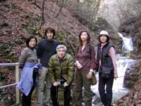 | 丸太橋を渡る「こわいよ〜」 | 3段に落ちる”落合三つの滝 | 川を渡り、ハシゴを上ると滝が見られる |