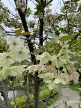 | ハス田へ向かうとウコン桜が見頃だった。 |
