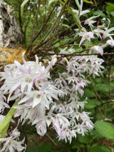 | 声をかけると、にこやかに迎えてくれた方に案内されて見せてもらうことにした。なんとセッコクが見頃!こんな近くで見たことがない。 |