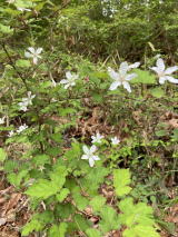 | 広いお庭は亡くなったご主人が 造ったそうで、山野草でいっぱいだった。ニリンソウは終盤、キンランも咲き始めていた。珍しいカンアオイもあった。今が一番いいときだそうで、お庭でお茶までいただき思いがけずゆっくりさせてらった。 |