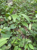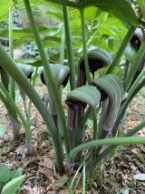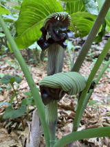 外周を周って、裏門から再び薬師池へ。ここのムサシアブミの大群落はすごい! 斜面いっぱいある。 |