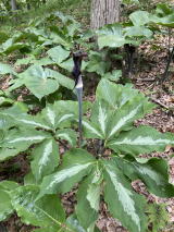 ウラシマソウはまだ花は出ていなかったが、特徴のある葉は見分けやすい。 |
