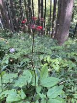 | 私達が入った千本屋の隣にある駒鳥売店からキレンゲショウマが見られるそうなので、見せてもらうことにした。気持ちよく案内してくれたので、帰りに漬物を買った。残念ながらまだ蕾だったが沢山ある。 |