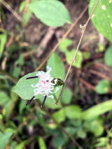 | 葉に特徴があるが、何しろ10~15㎝くらいの小ささで白い小さな花なので見つけにくい。 |
