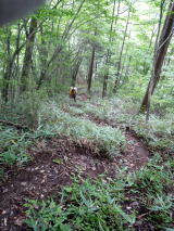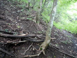 | 途中から、直登できないように枝で通行止めになり、右へ巻き道がついていた。 |