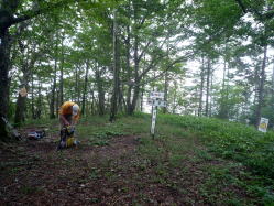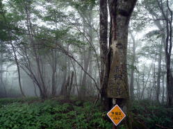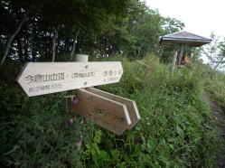 | 薄っすらともやがかかり展望もなく、幻想的で、とっても静かな山頂だった。 |