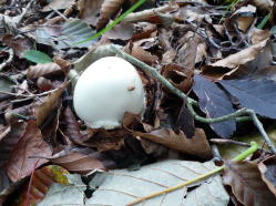| ゆで卵そっくりのきのこは、その名の通りタマゴタケ(割れると中は、トマトのように真っ赤)。 |