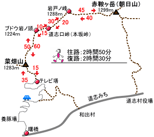 | 今回クマさんが、菜畑山(なばたけうら)から赤鞍ヶ岳へと歩く計画を立てた。 |