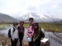 峠が近づくにつれ山々はまだ真っ白だが、新緑はみずみずしくとてもきれいだった。鳩待峠に着くと、至仏山登山口は雪に覆われ、6月の山開きまではまだ入山できないそうだ。 |