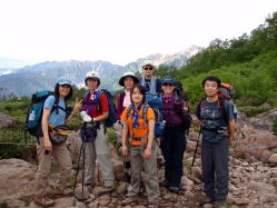 | 毎年夏に行われる親戚山行だが、今回はcharlieの、100名山踏破記念山行になった。最後に皆で登れるようにと100座目に白馬岳を残しておいてくれた。 |