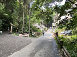 | 最初は、木がうっそうとしていて薄暗い。 |