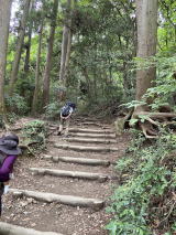 | 3号路の最後の階段を登っていると、植物観察の団体が降りて来た。先頭が見たことある人だ。私は何を勘違いしたのか「こんにちは、山田先生」と言ってしまった。スタッフの人が「新井二郎先生です」と訂正してくれた。あ~失礼しました。 |