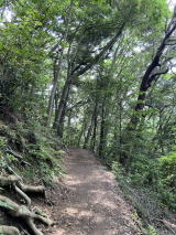 | 山頂でお弁当を食べて休んでいたら、いい風が吹き気持ちよかった。展望は望めなかったが、歩くにはちょうどよい。 |
