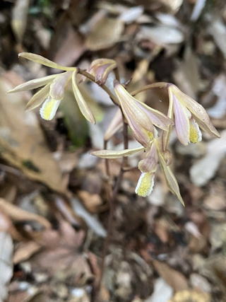 | 最後にだめもとでムラサキムヨウランを探しに行ったが、やはり今年は出ていなかった。でもその近くにムヨウランが出ていた。こんなところにもあった |