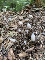 | 神面山の巻道で、ギンリョウソウの雄しべが落ち子房が膨らんでいる姿を初めてみた。 |