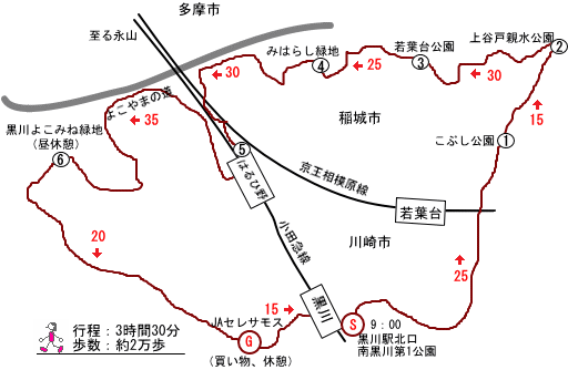 | 今回は、小田急線黒川駅に集合し、多摩市と川崎市の境を歩く。私は2回目の参加となる。(前回2018) | |