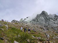 | 現在は南峰は立ち入り禁止で、目指すのは標高2393mの北峰頂上だ。 | ![]() |
