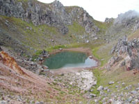 | 青い水をたたえた火口湖が見えた。 | 最後の岩場 | |